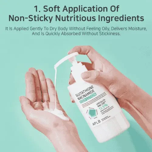APLB Glutathione Niacinamide Body Lotion is a lightweight, fast-absorbing body