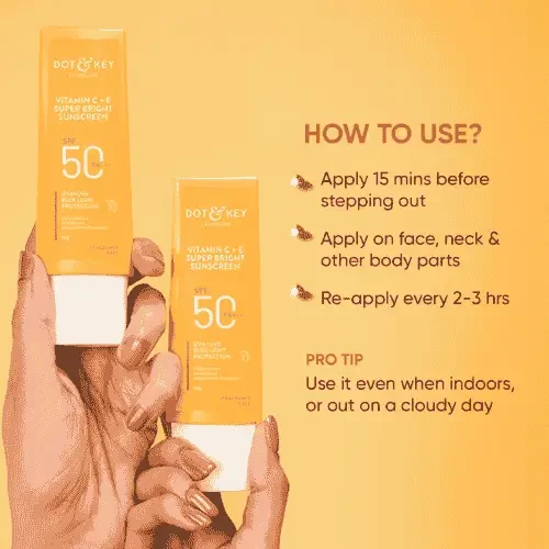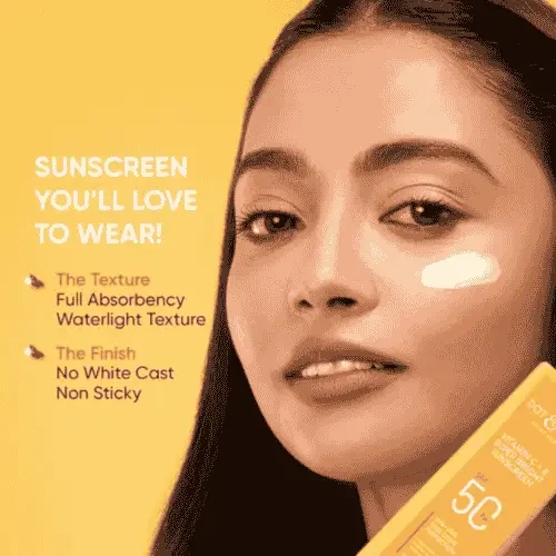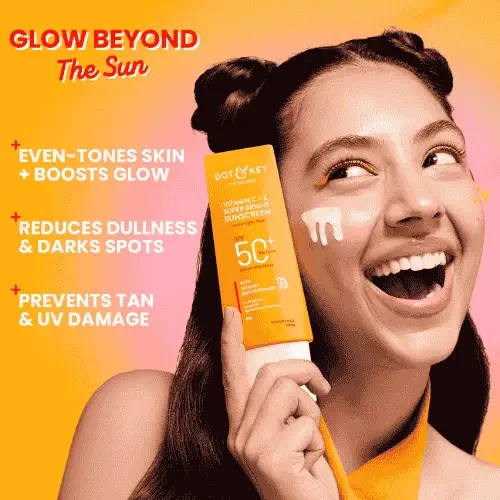 Broad-spectrum SPF 50+ with Vitamin C & E glow boost.