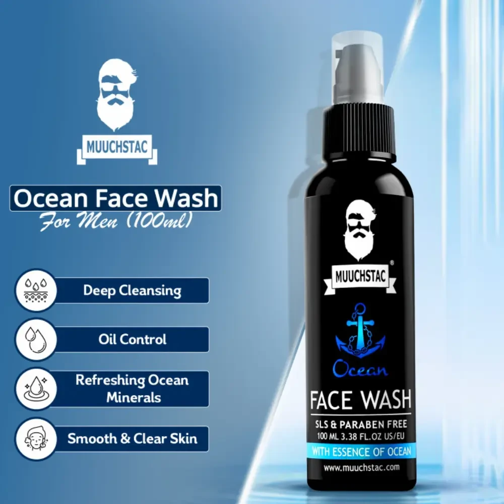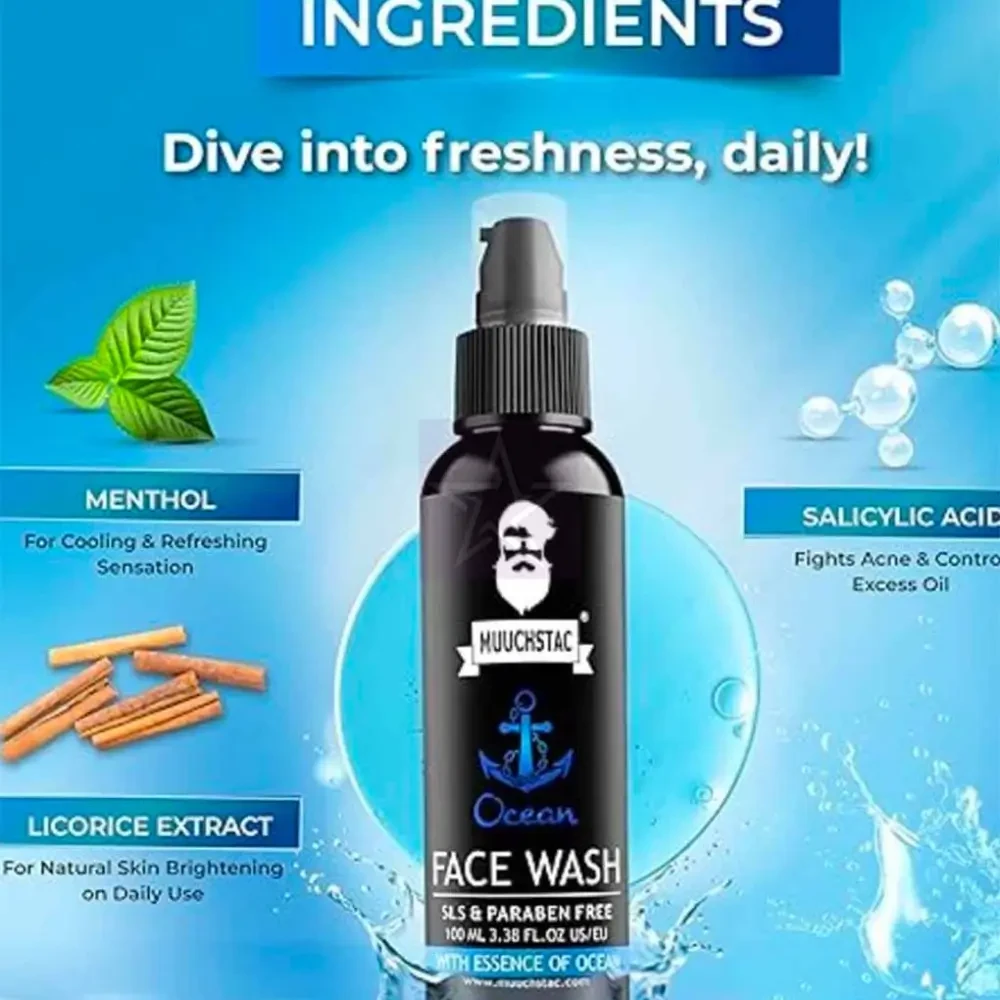 Muuchstac Ocean Face Wash For Men 100ml - Refreshing ocean-inspired face wash for men that deeply cleanses, controls oil, and revitalizes skin.