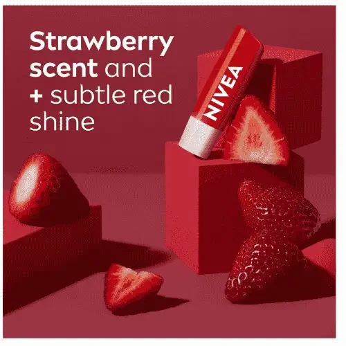 Nivea Strawberry Shine Lip Balm 4.8g - Moisturizing lip balm with natural strawberry extract for glossy, smooth, protected lips.
