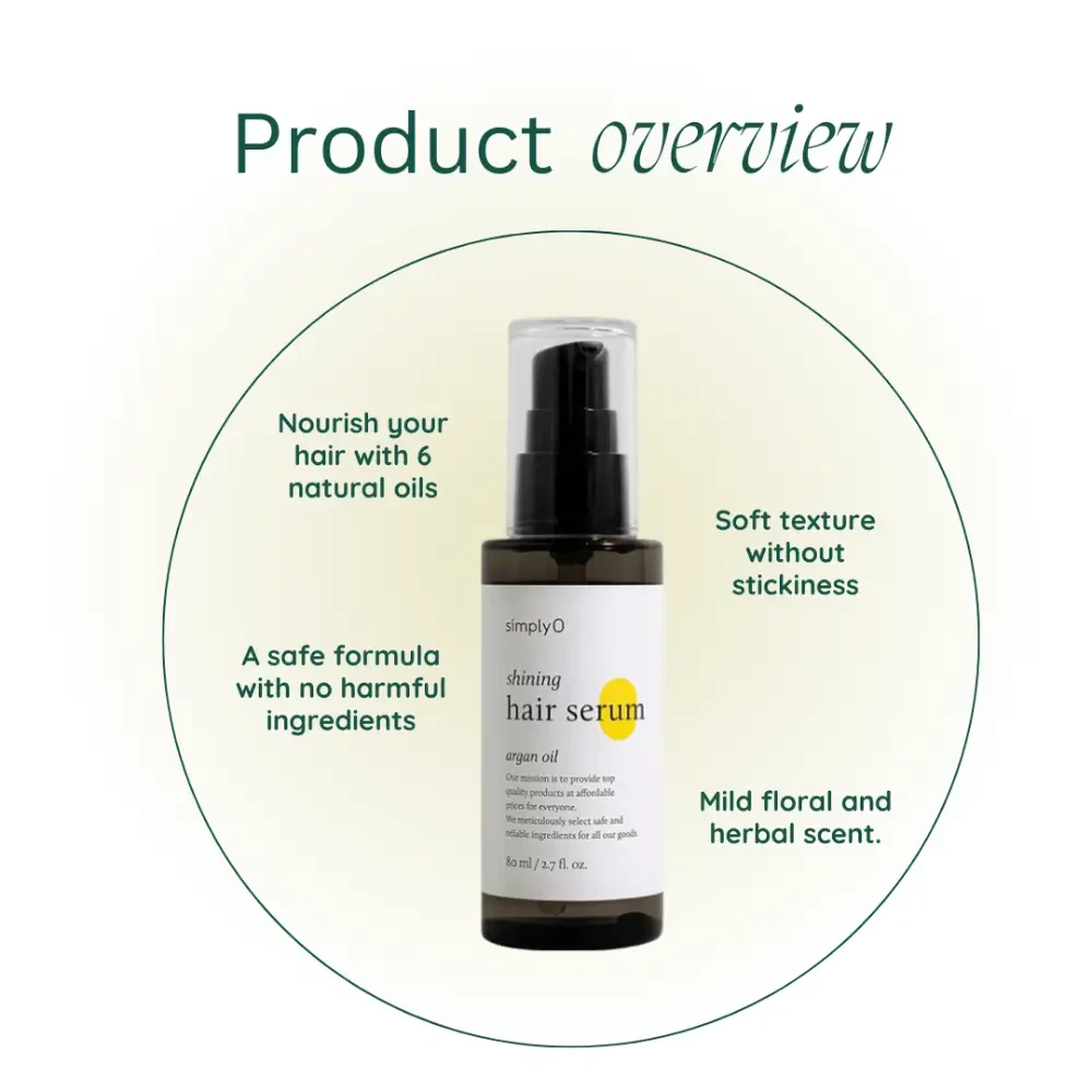 SimplyO Shining Hair Serum Argan Oil 80ml - Nourishing argan oil hair serum to add shine, reduce frizz, and protect hair from damage.