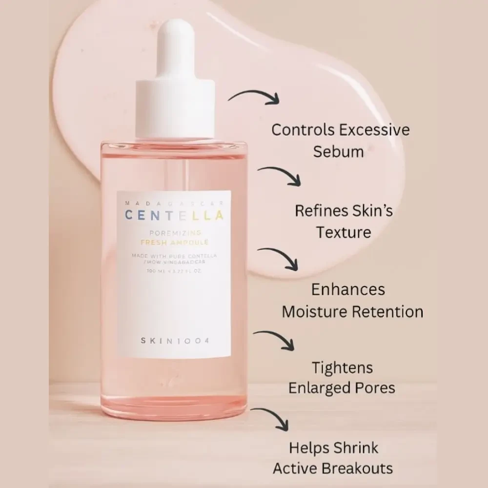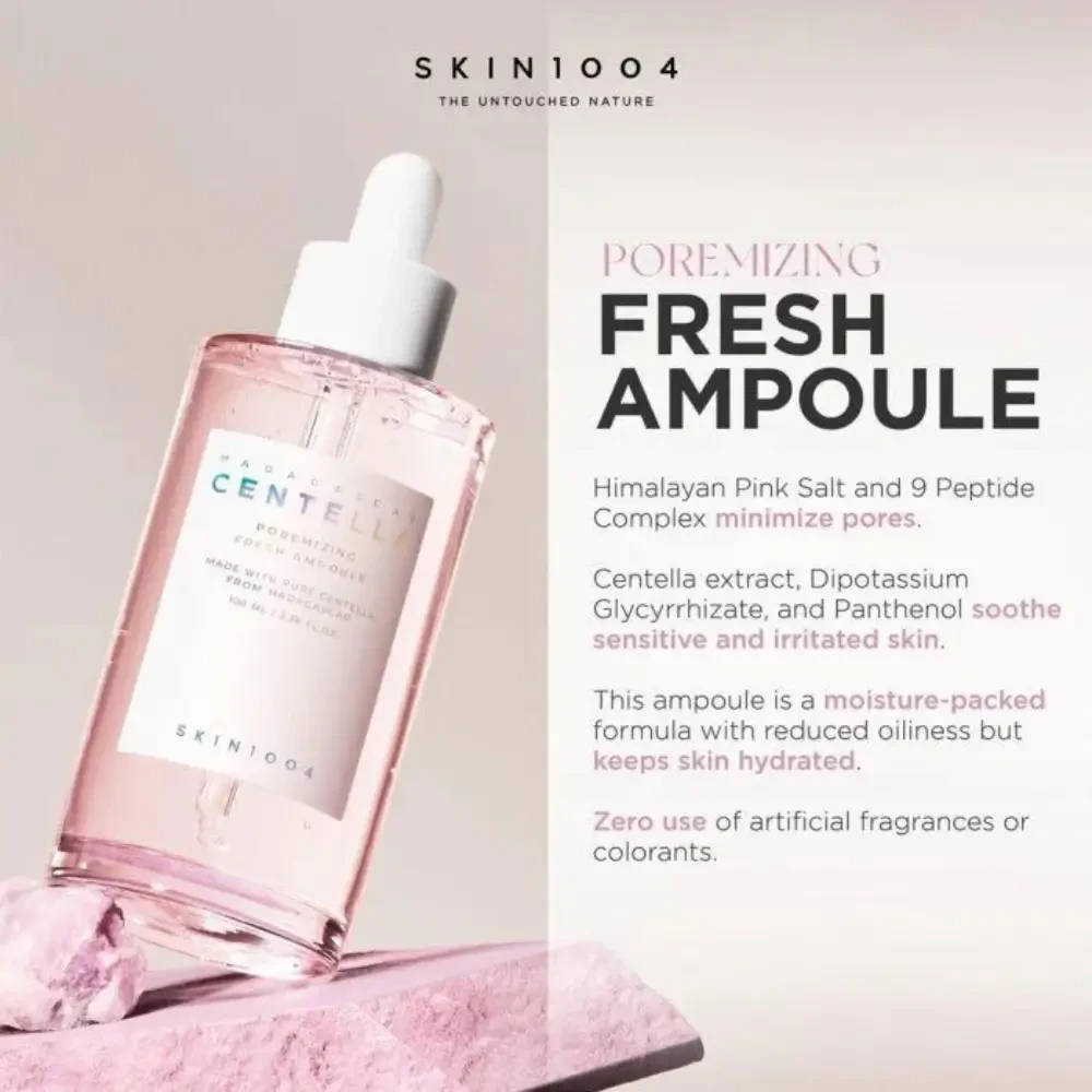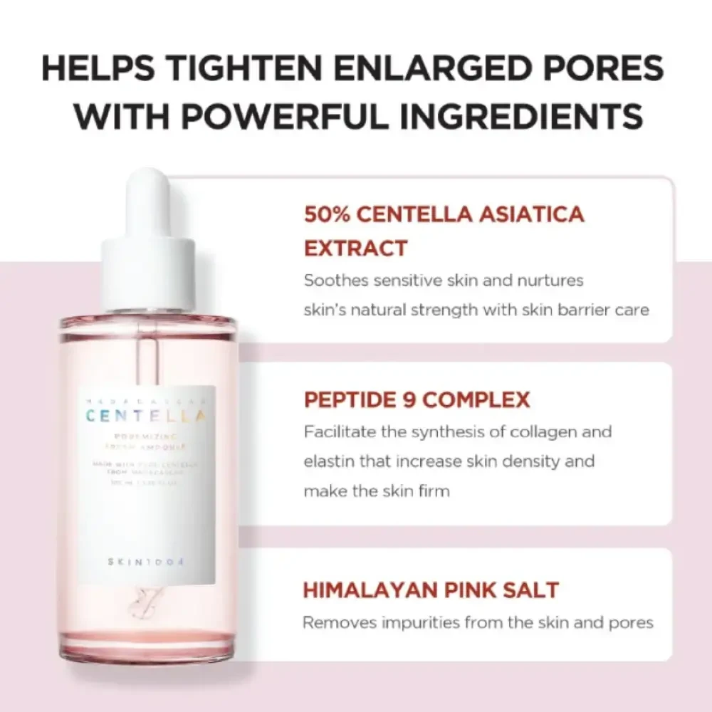 SKIN1004 Madagascar Centella Poremizing Fresh Ampoule 50ml - Refreshing pore-tightening ampoule with Centella and Pink Salt to control oil and refine skin texture.
