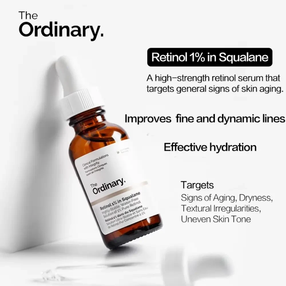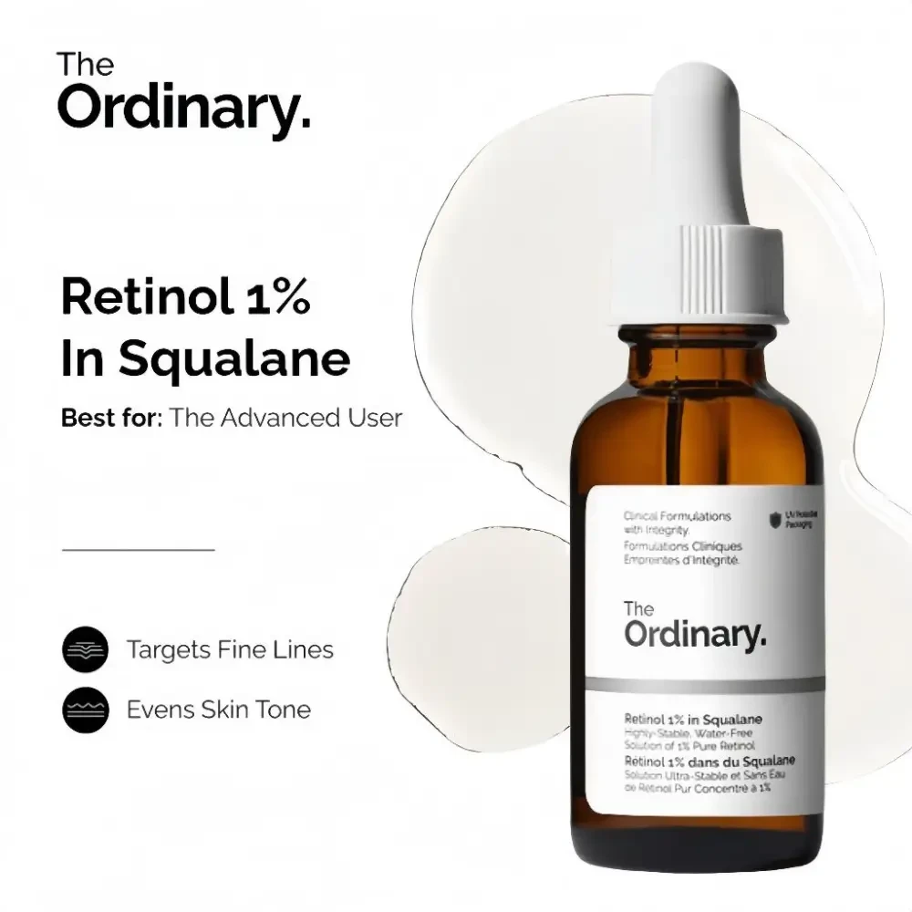 The Ordinary Retinol 1% in Squalane 30ml - High-strength retinol serum in Squalane to reduce deep fine lines, improve texture, and boost skin radiance.