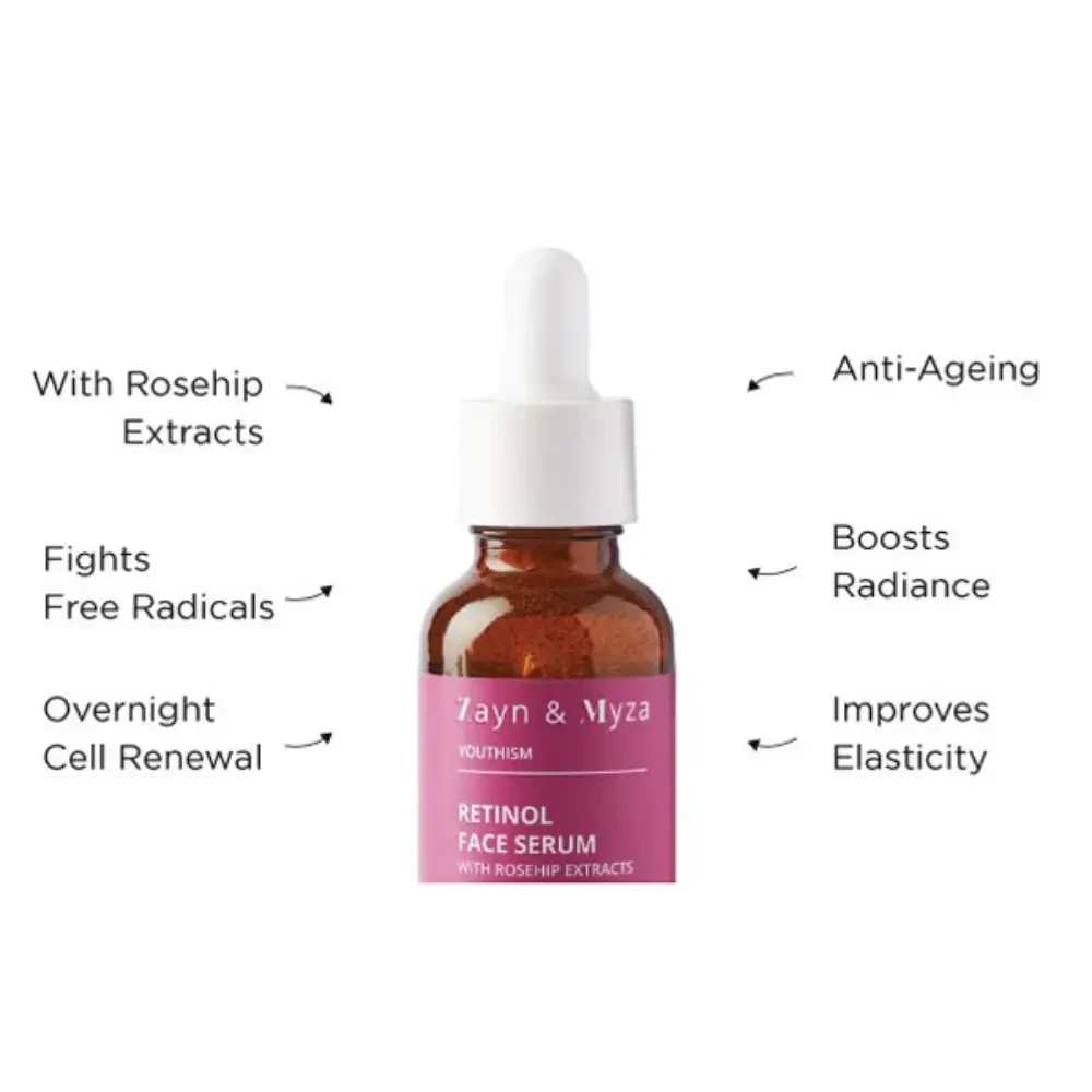 Zayn & Myza Retinol Face Serum With Rosehip Extracts 30ml - Anti-aging retinol serum with Rosehip Extracts to reduce fine lines, improve texture, and restore radiance.