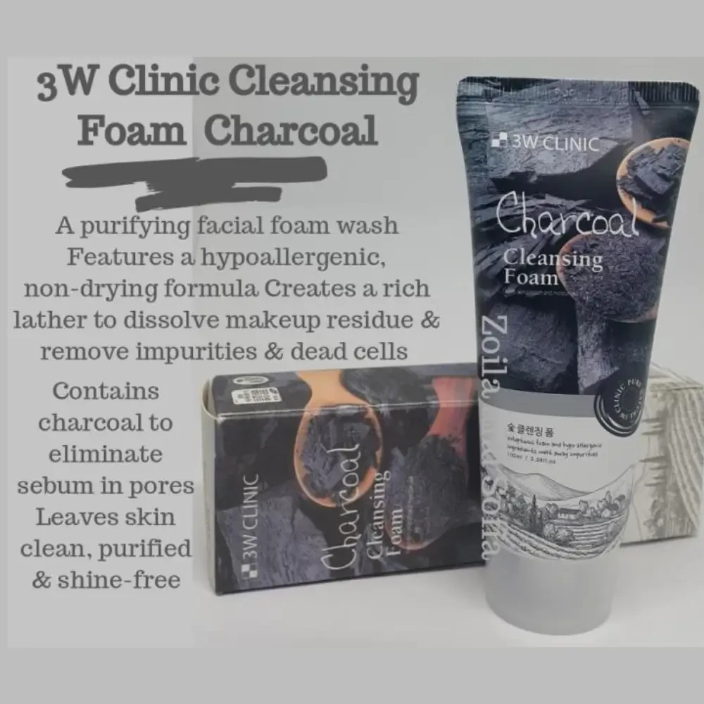 3W Clinic Charcoal Cleansing Foam 100ml is a purifying facial cleanser