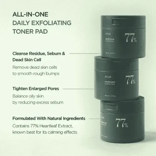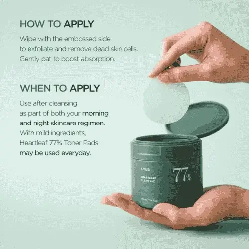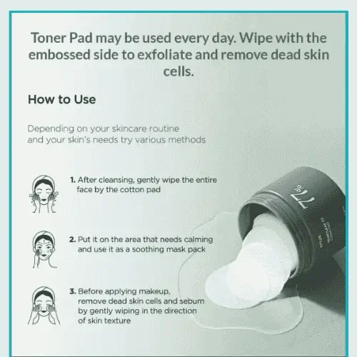 gentle, daily-use toner pad soaked in 77% Houttuynia Cordata (Heartleaf)