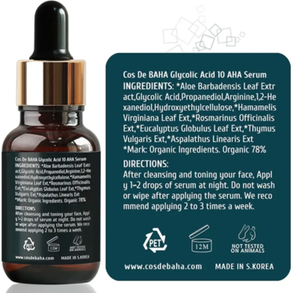 Cos De BAHA Glycolic Acid 10% AHA Serum G 30ml is a potent Korean exfoliating