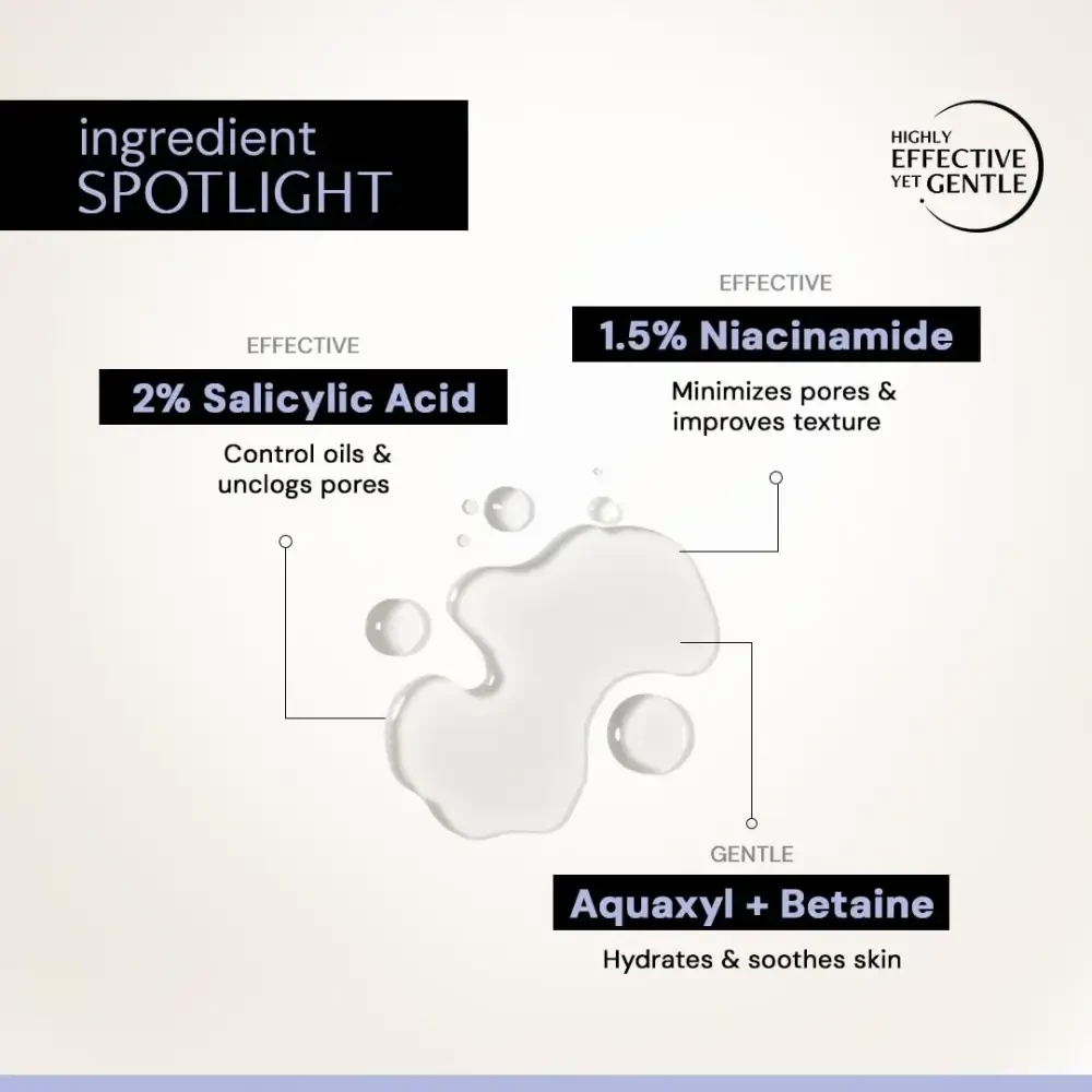 cleanser formulated with 2% Salicylic Acid to help control excess sebum, unclog