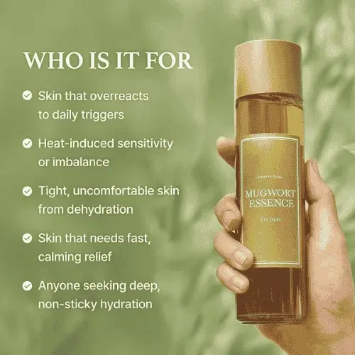 lightweight, hydrating essence formulated with 75% Mugwort Extract and other