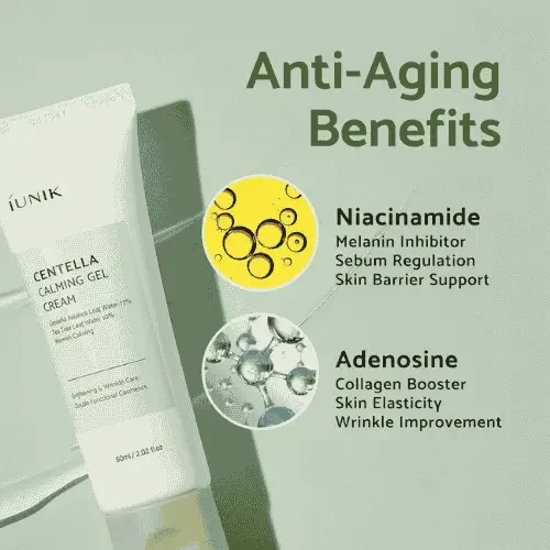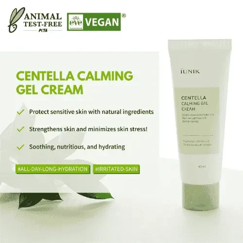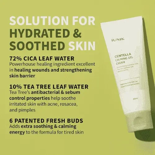 iUNIK Centella Calming Gel Cream is a lightweight, fast-absorbing gel