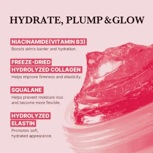 Hydrolyzed Collagen, Peptides, Glycerin, Niacinamide, Hyaluronic Acid,