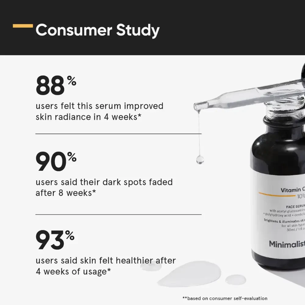 Minimalist Vitamin C 10% Face Serum 30ml - Brightening serum with 10% Vitamin C to reduce dark spots, improve skin tone, and boost radiance.