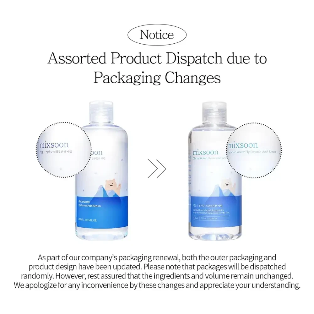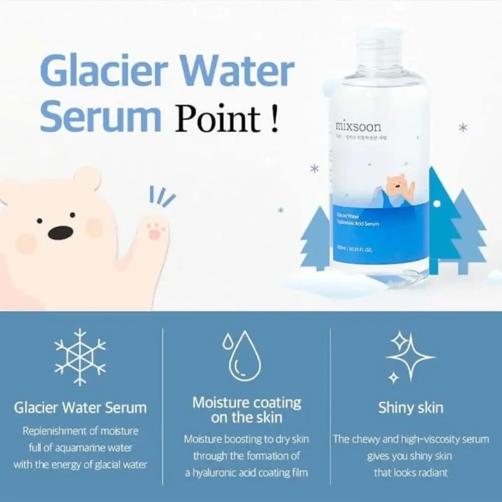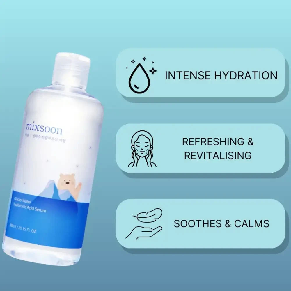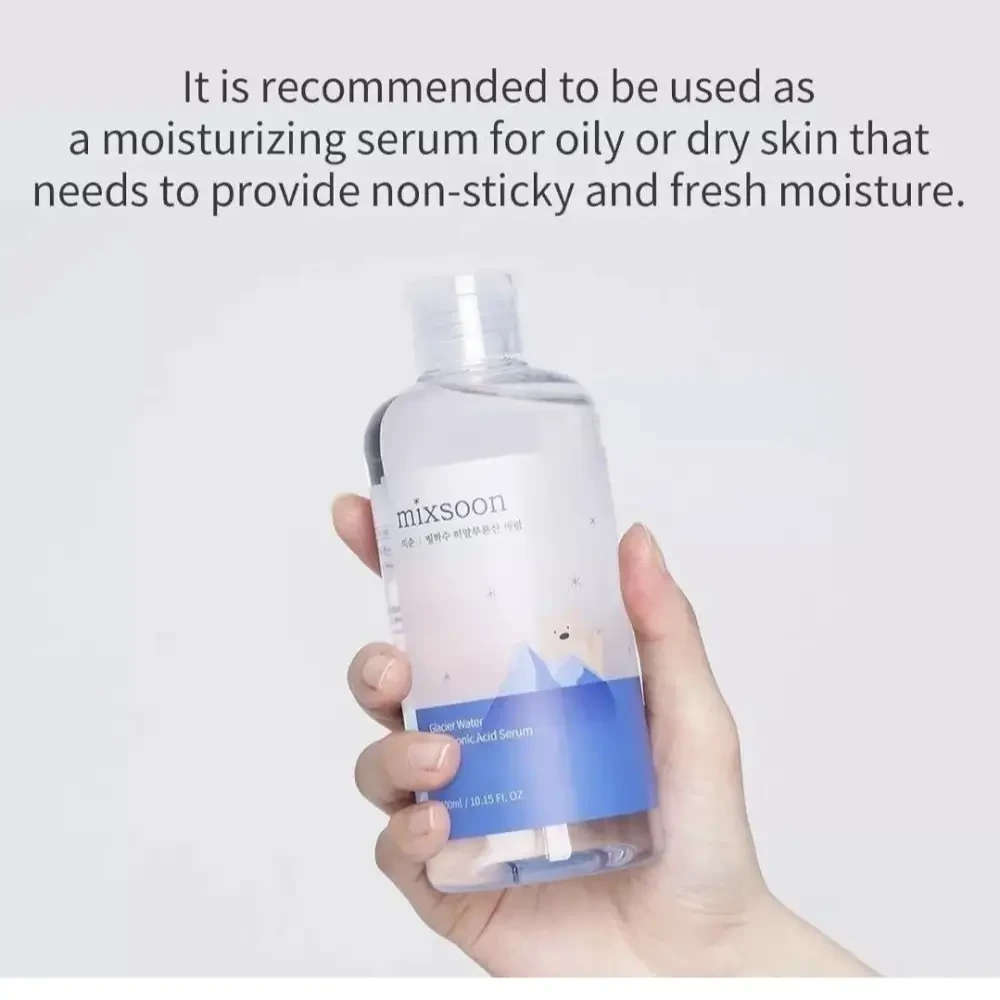 Mixsoon Glacier Water Hyaluronic Acid Serum 300ml - Ultra-hydrating serum with glacier water and hyaluronic acid to deeply moisturize and plump the skin.