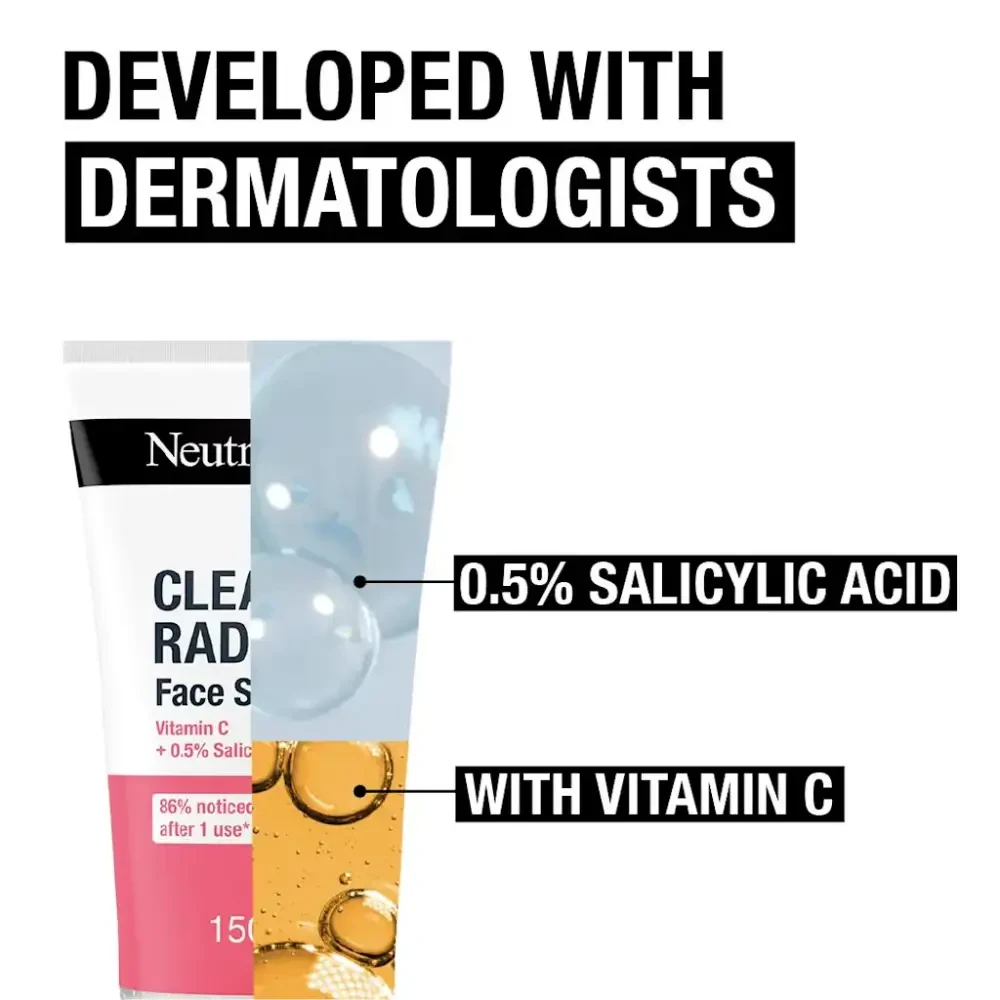 Neutrogena Clear & Radiant Face Scrub 150ml - Gentle exfoliating face scrub with microbeads and Vitamin C that removes dead skin, unclogs pores, and brightens the complexion.
