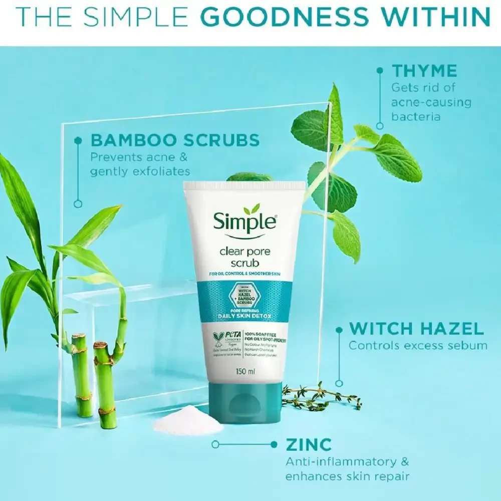 Simple Daily Skin Detox Clear Pore Facial Scrub 150ml - Gentle daily facial scrub that detoxifies pores, removes impurities, and refreshes skin without irritation.