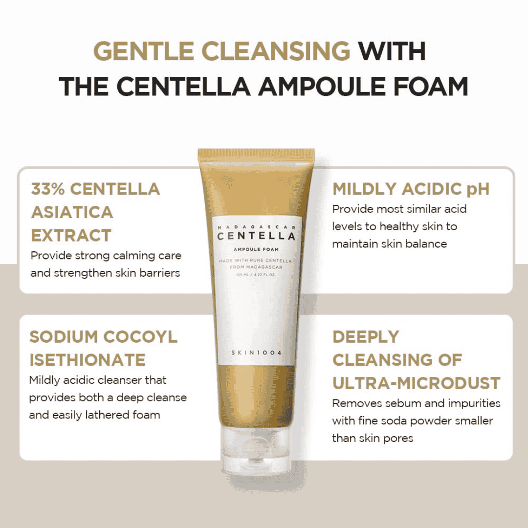 SKIN1004 Madagascar Centella Ampoule Foam Cleanser is a soothing, low pH facial