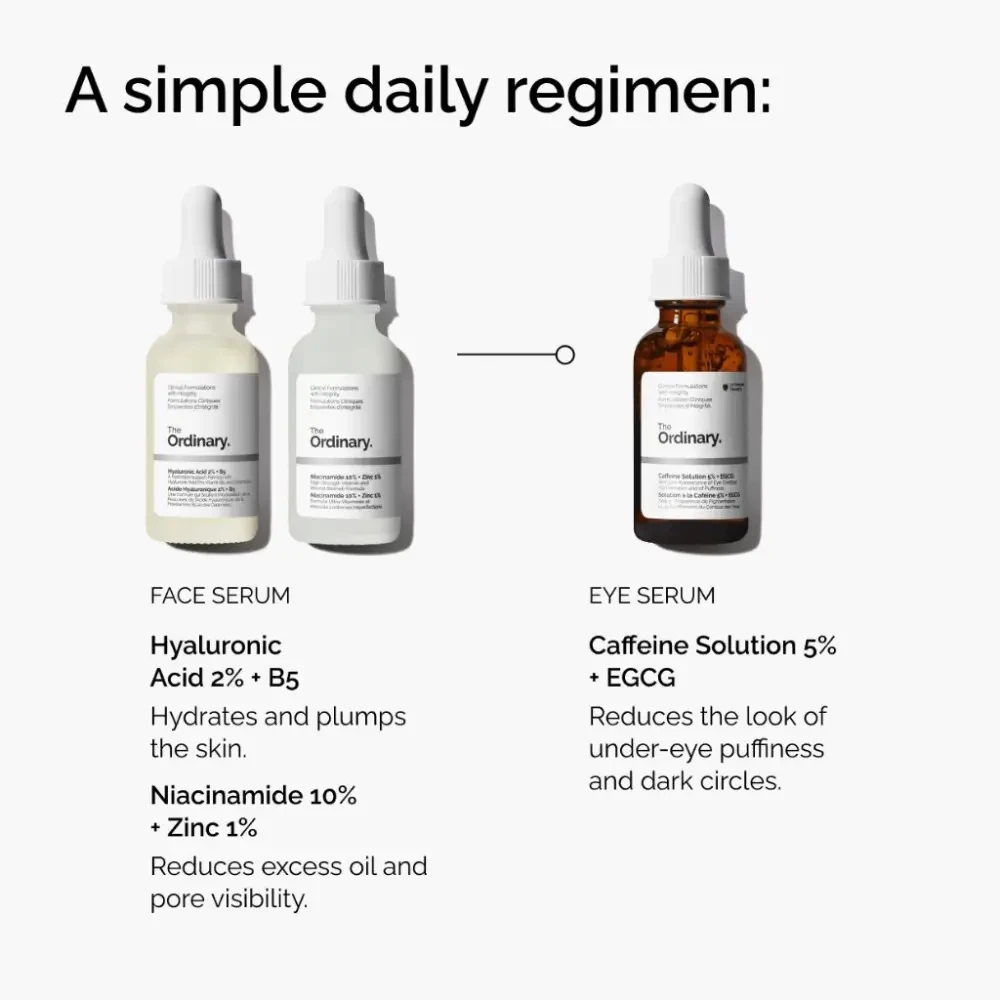 The Ordinary Caffeine Solution 5% + EGCG 30ml - Targeted eye serum with 5% caffeine and EGCG to reduce puffiness and dark circles for a refreshed look.