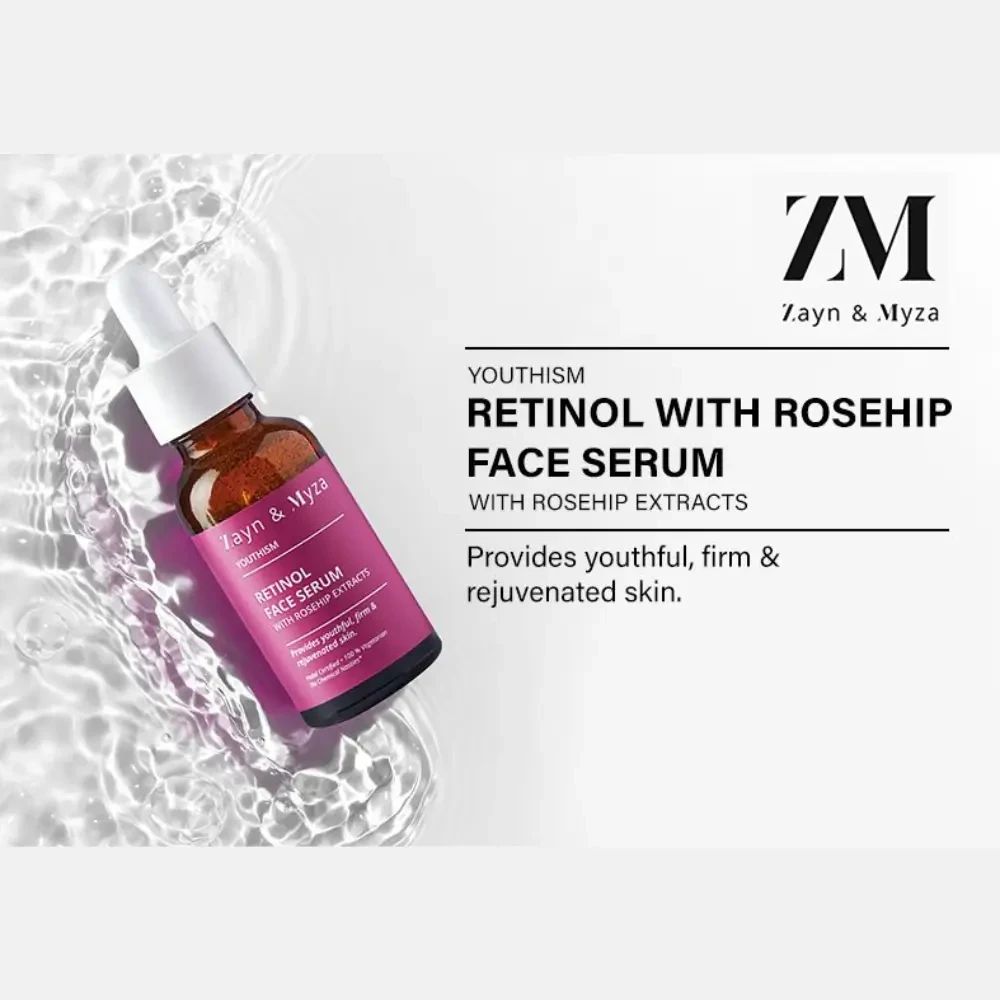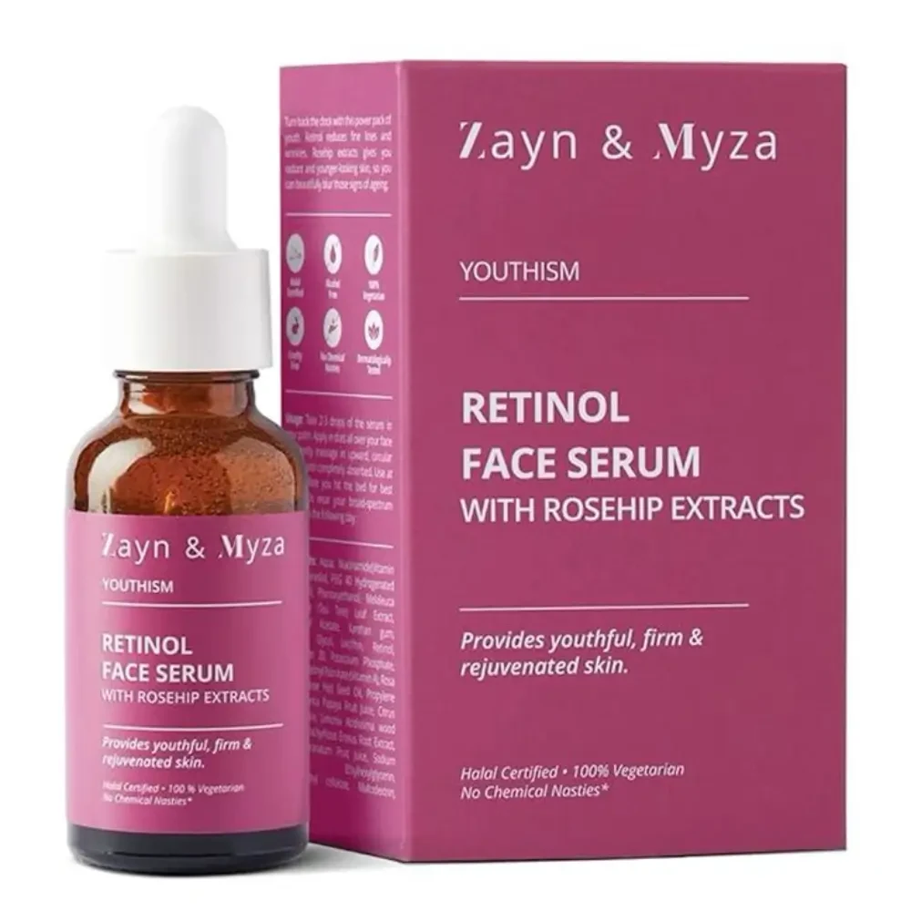 Zayn & Myza Retinol Face Serum With Rosehip Extracts 30ml - Anti-aging retinol serum with Rosehip Extracts to reduce fine lines, improve texture, and restore radiance.